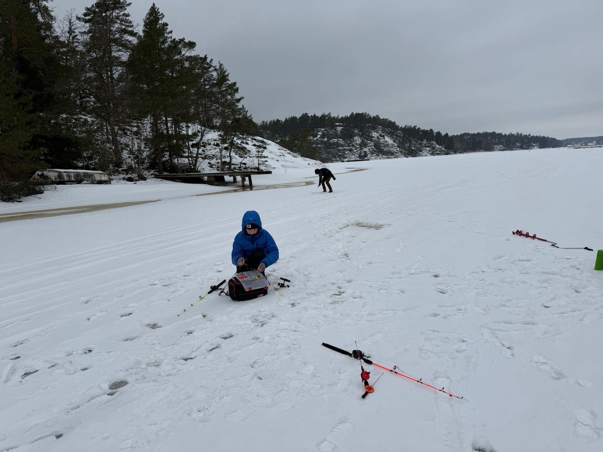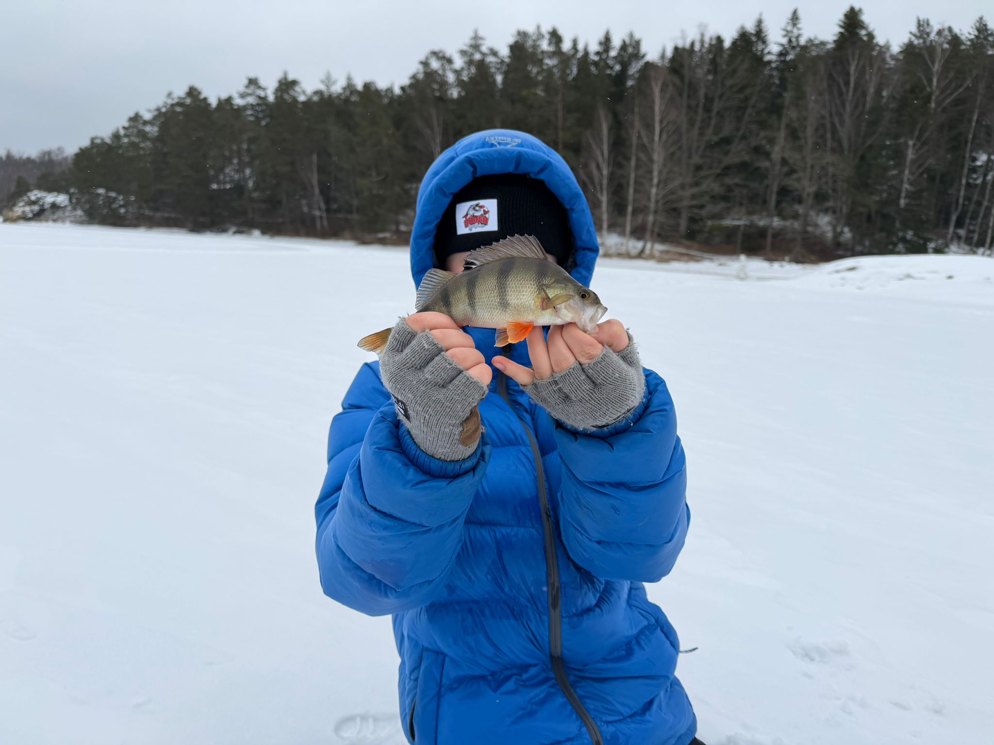 I lördags den 21 februari var Matteo, hans morfar och Lucas ute på Ingarö för en riktig vintertur. Mulet väder och runt +1 grad – lite rått i luften, men helt okej fiskeförhållanden.