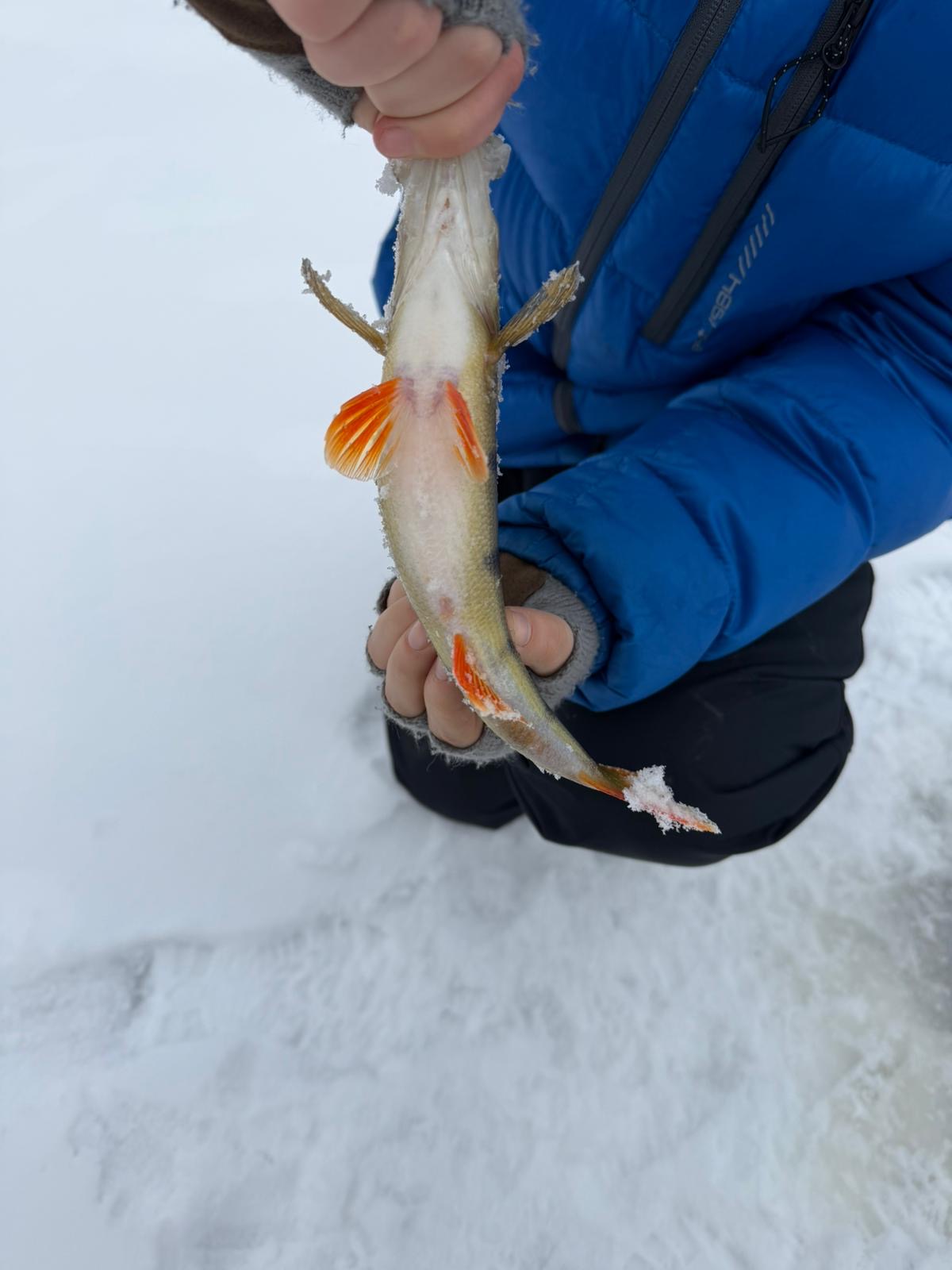 Det började lugnt. Några hål utan napp, lite förflyttningar och snack om var fisken kunde stå. Men när de väl hittade rätt område började det hända saker. Först någon enstaka abborre – sedan fler. När stimmet väl stod rätt under isen gällde det att vara snabb ner med pimpeln igen.
