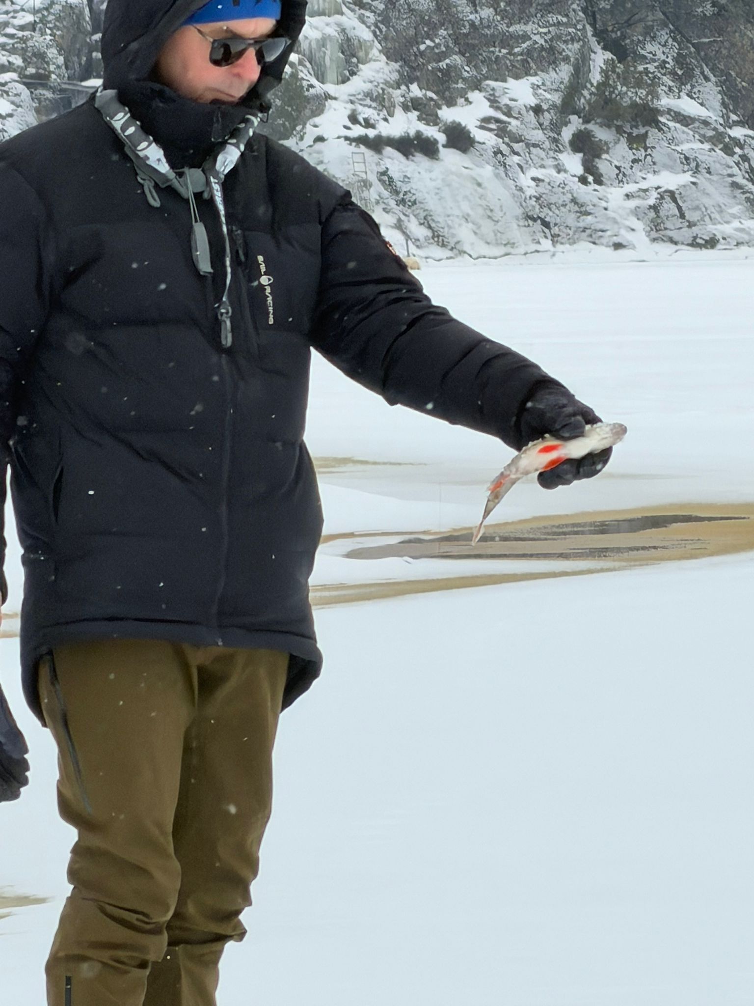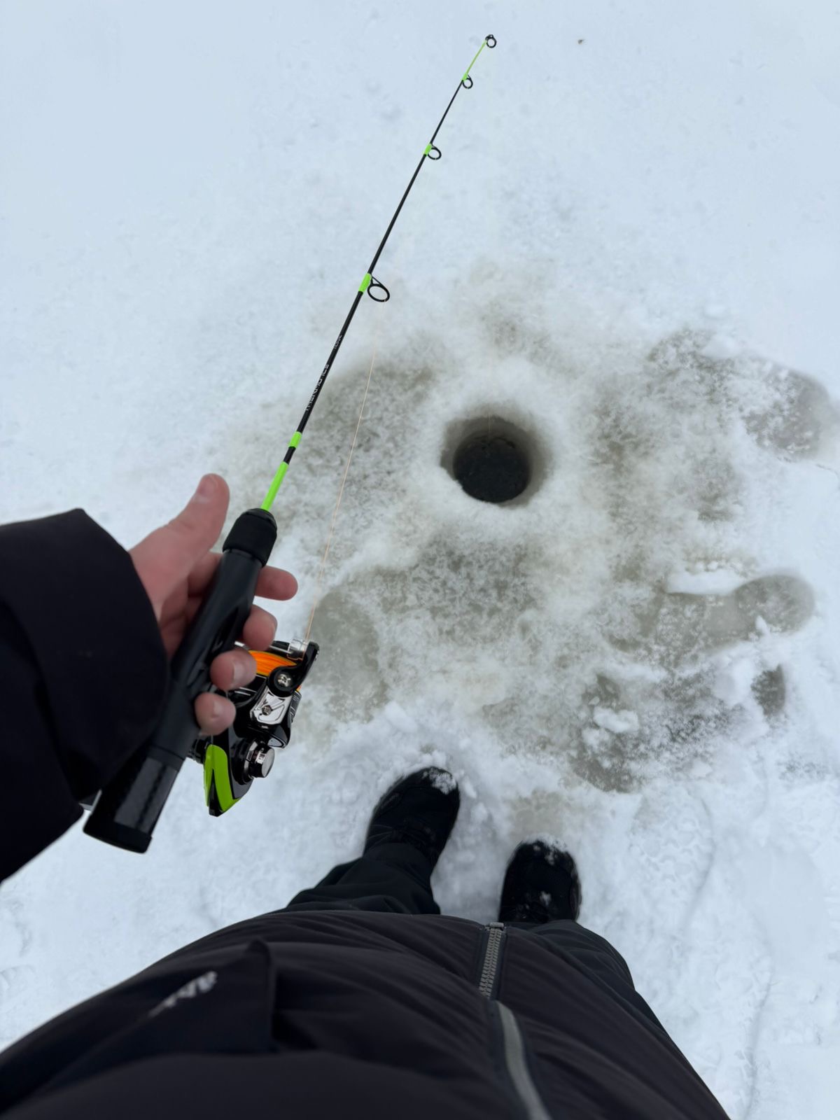 De passade även på att prova lite ismete under dagen. Några beten fick ligga ute samtidigt som de pimpelfiskade, och det gav en extra spänning i väntan på eventuellt gäddhugg. Även om det inte small till den här gången så är det alltid kul att kombinera metoder och hålla fler möjligheter öppna under en vinterdag på isen. 🎣