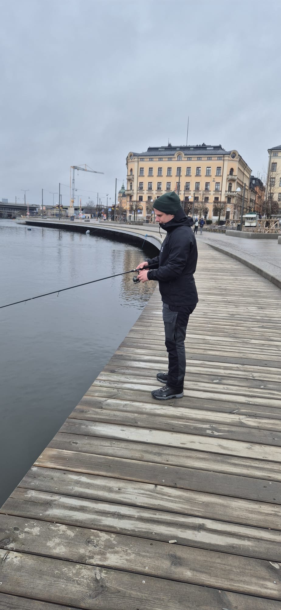 IstĂ€llet styrde vi om till öppet vatten vid Slussen. Vi testade olika beten och tekniker, men den hĂ€r dagen ville fisken inte riktigt vara med. DĂ€remot bjöd botten pĂ„ lite “bonusfynd” – Robert lyckades dra upp ett gammalt havsöringsdrag och tvĂ„ spinnare som fastnat dĂ€r nere. Alltid nĂ„got 😉