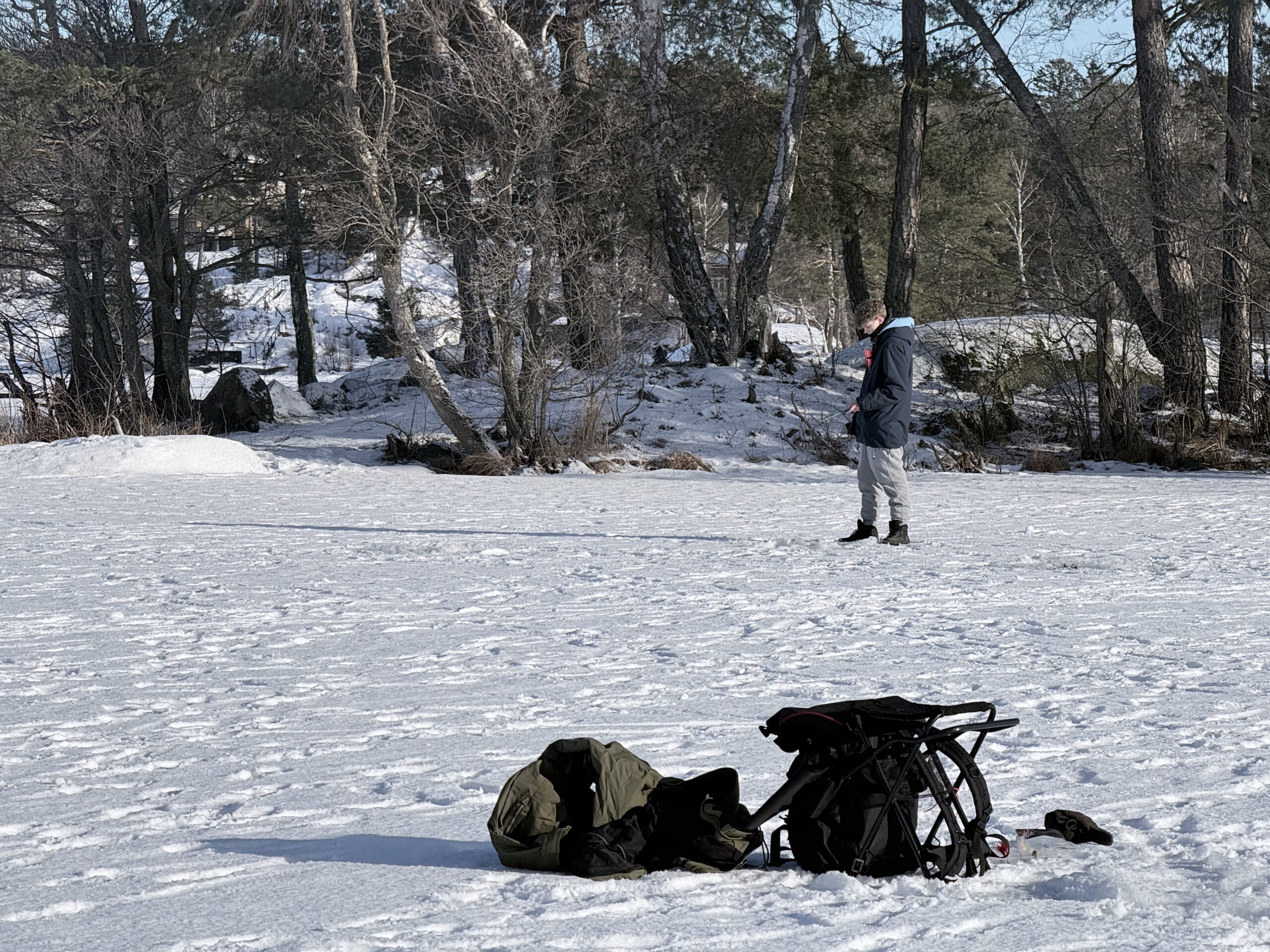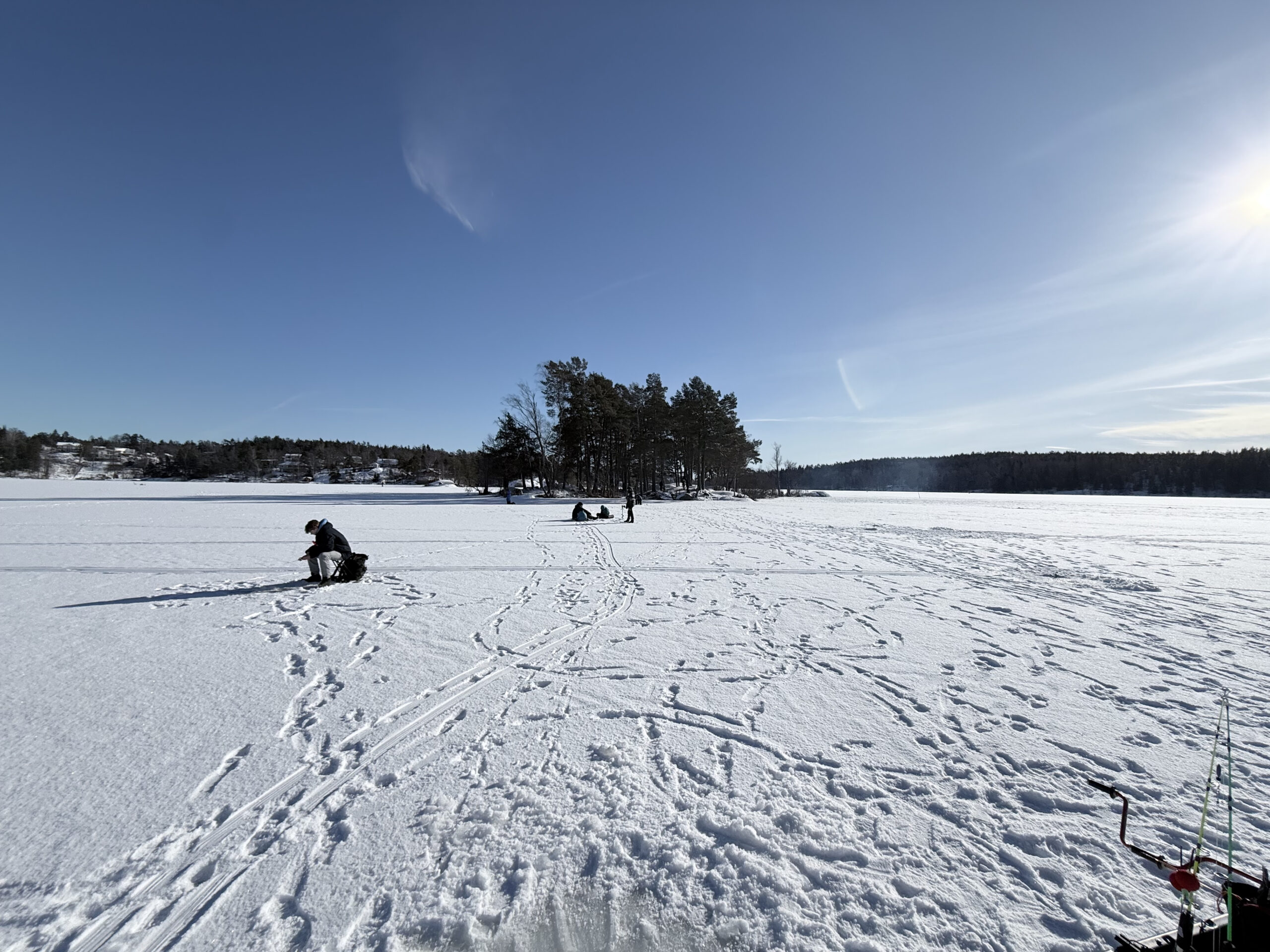 Redan frĂ„n start var det liv och rörelse ute pĂ„ isen. HĂ„l borrades, spön riggades och nyfikna barn samlades runt hĂ„len. Under dagen kom flera barn och ungdomar förbi â nĂ„gra planerat, andra som bara hade vĂ€garna förbi och blev nyfikna nĂ€r de sĂ„g oss stĂ„ dĂ€r ute i solen.