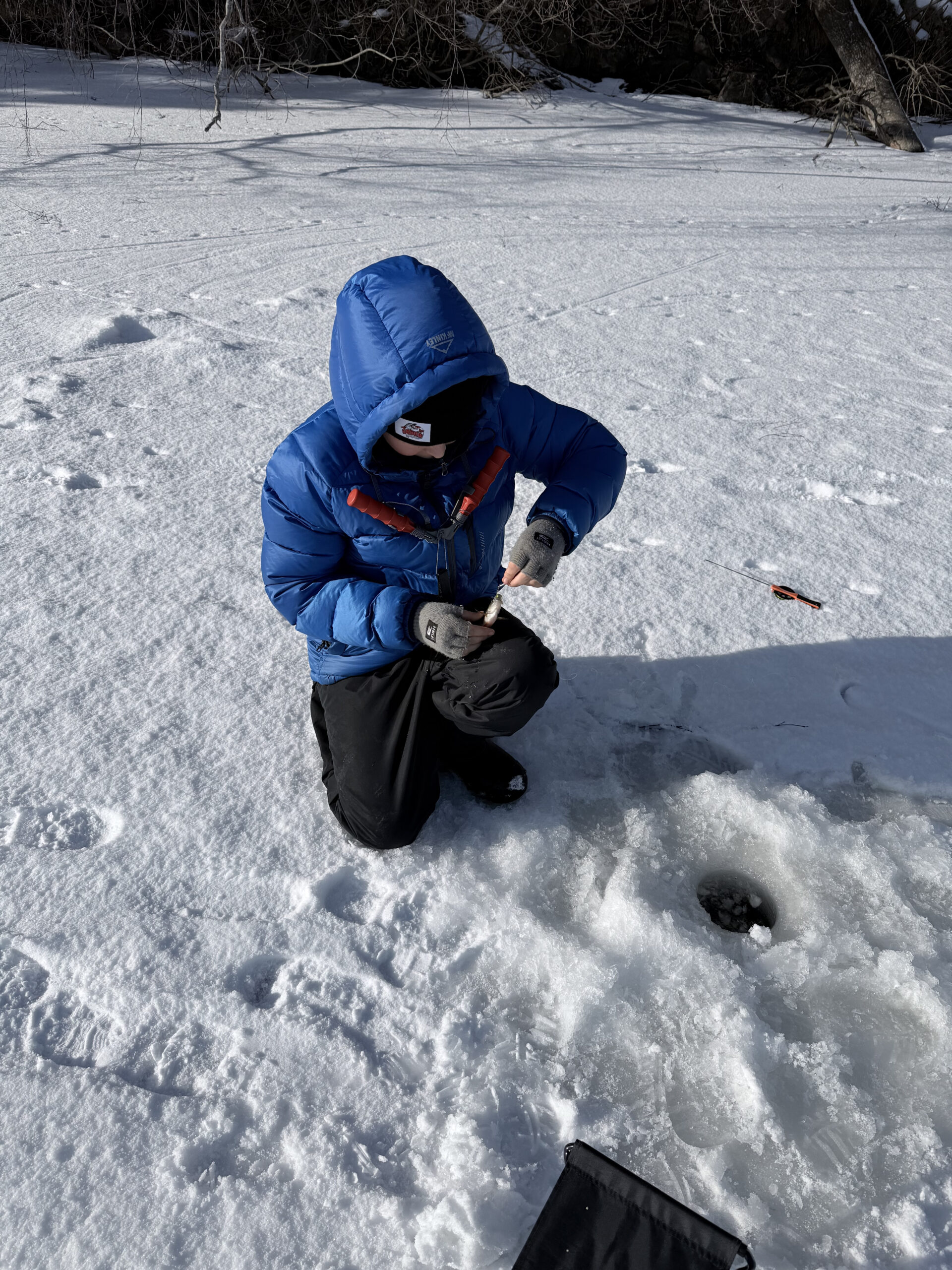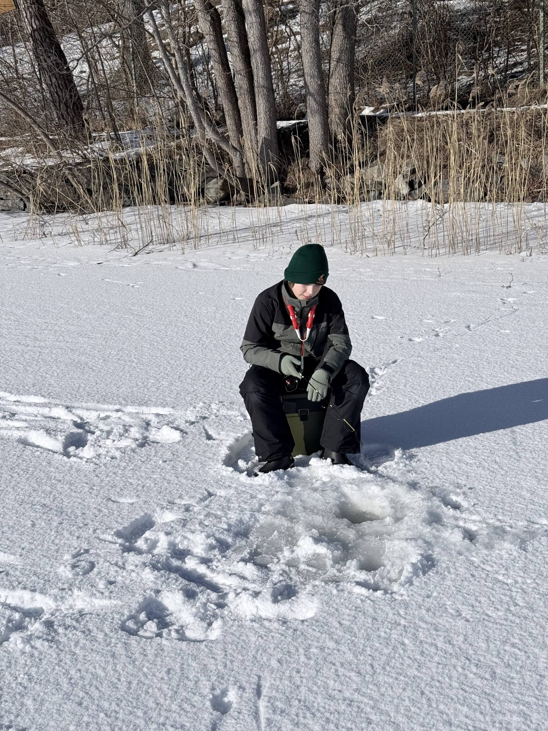 Det hĂ€r var vĂ„r första öppna aktivitet dĂ€r alla ungdomar som ville fick komma och testa pimpelfiske â oavsett om man fiskat tidigare eller aldrig hĂ„llit i ett spö.
